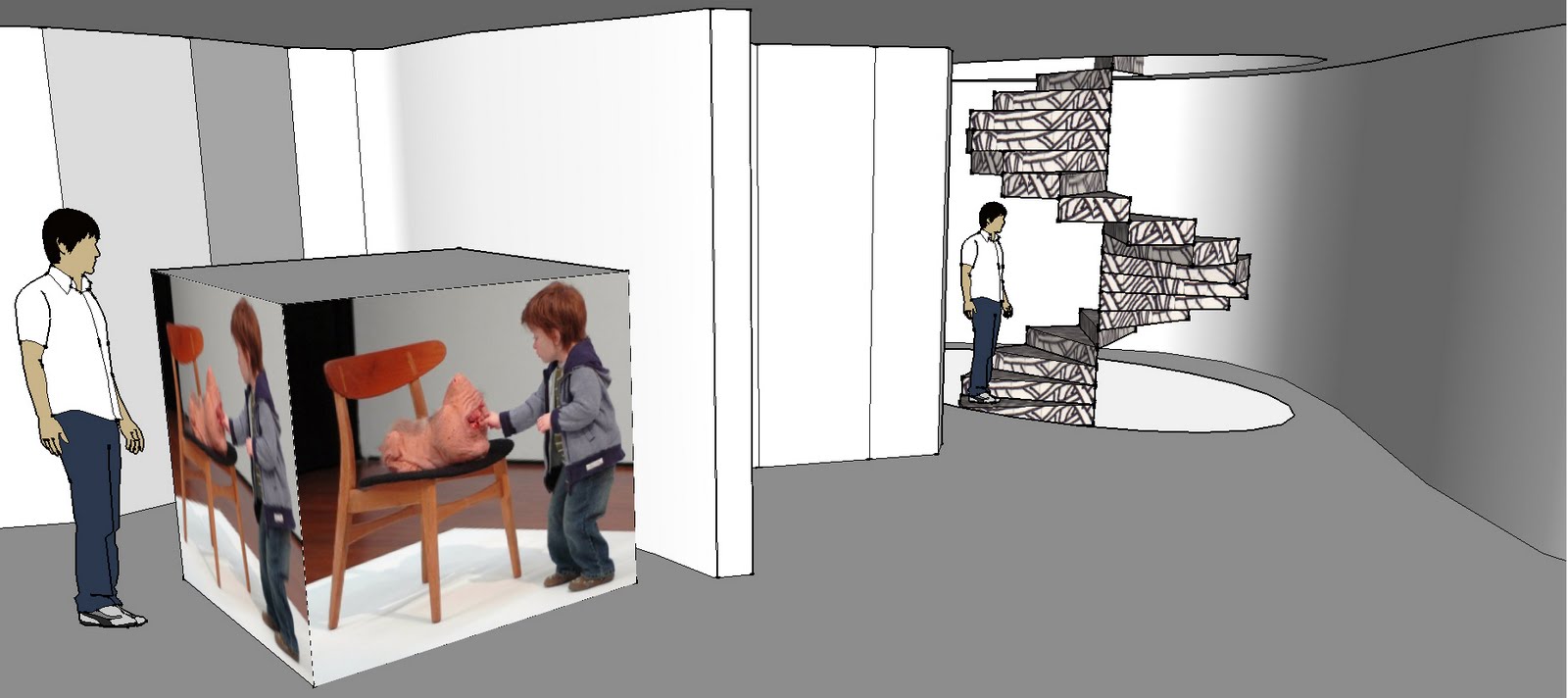 Detail of the 'knotted' texture applied to the Spiral Staircase. This dense texture not only furthers the "touch" of Piccinini's maze studio, but accentuates the winding movement of the stair via its centralizing visual effect.Video:
